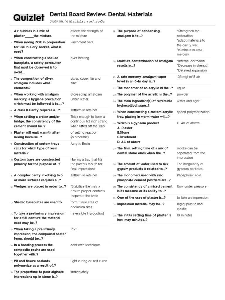 Dental Board Review Dental Materials PDF Dentistry Branches Building Materials